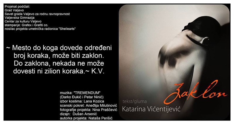 У среду 25. маја, од 20 часова, у Културном центру „Хаџи Рувим“ биће изведена монодрама „Заклон“, која говори о породичном насиљу над женама. Монодраму ће одиграти професионална глумица из Ваљева Катарина Вићентијевић, која је написала и текст. Представа је настала у оквиру пројекта