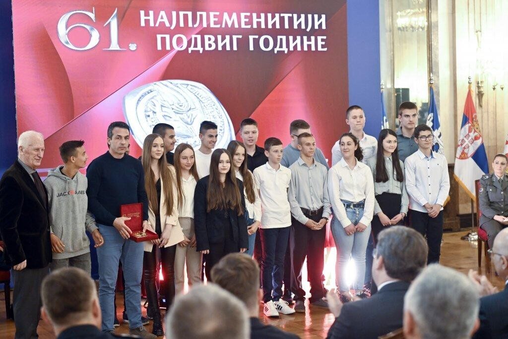 НА свечаности у Скупштини града Београда “Вечерње новости” су 61. пут уручиле златне и сребрне плакете добитницима признања у познатој и традиционалној акцији “Најплеменитији подвиг године”, а међу храбрим и племенитим грађанима Србије награђени су и ђаци из Боговађе предвођени својим наставником Иваном Живановићем.
