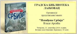 Градска библиотека Лајковац у четвртак 13. децембра од 19 сати, у великој сали Општине, организује представљање књиге „Невиђена Србија“ Владе Арсића. Ово дело у издању „Лагуне“, које од недавног објављивања изазива велику пажњу јавности, има поднаслов „Најлуђе сторије из наше историје“. Садржи скоро невероватне приче и анегдоте из српске историје попут оне да је Карађорђе четири пута сахрањиван, да је прва Олимпијада одржана на Палићу, о кориди на Ташмајдану итд. Велики путник и познавалац наших крајева, публициста и писац Влада Арсић је прикупио несвакидашње историјске и савремене приче. Иако оне могу да послуже као сјајна забава, цртице из „Невиђене Србије“ много говоре о нама самима.