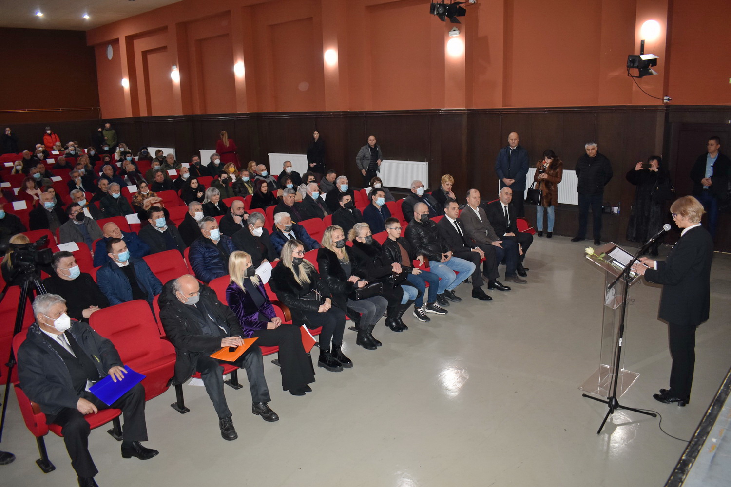 Овом чину претходила је једночасовна комеморација у лајковачком Културном центру „Хаџи Рувим“. Након што је прочитан телеграм председника Републике Александра Вучића, обратио се председников изасланик министар полиције Александар Вулин, изразивши саучешће „не само породици, па ни само земљацима Радована Белог Марковића, већ свакоме ко говори и мисли српски, сваком оном ко се поноси нашим језиком и писмом, јер губитак је сваког од нас; српски језик сиромашнији је за једног великог говорника, великог писца, за једног колубарског ратника.“