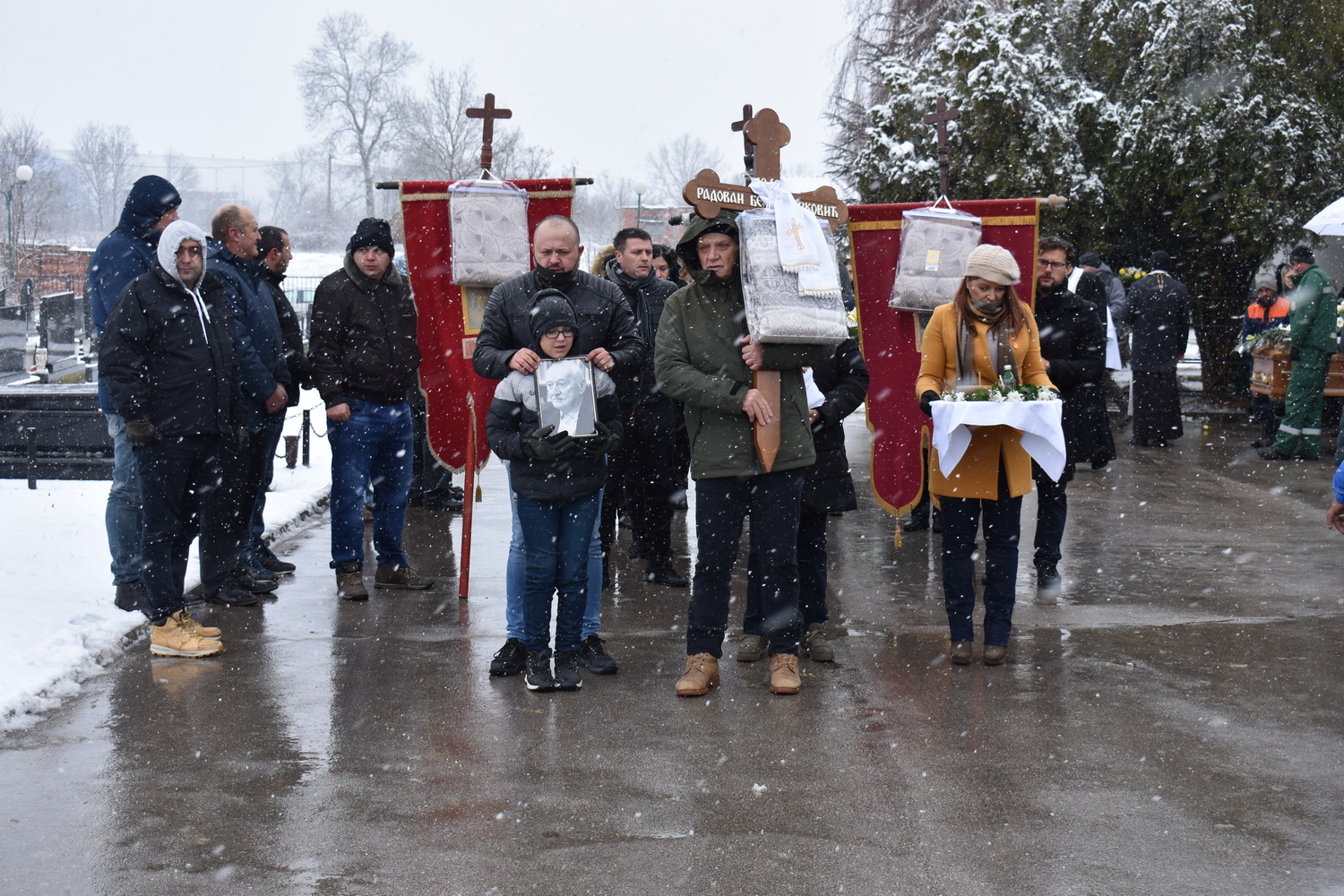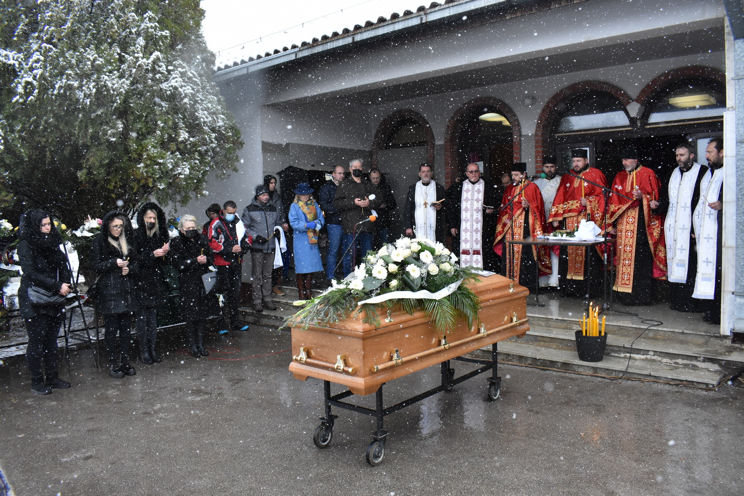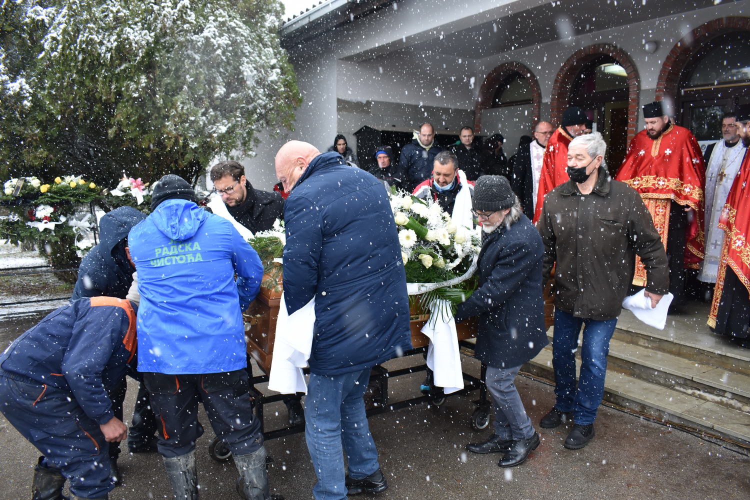 Док су беле пахуље све јаче вејале колубарском вароши, уз опело свештенства које је водио заменик епископа ваљевског протонамесник Филип Јаковљевић, упечатљив говор мр Дарена Миливојевића из Градске библотеке Лајковац, звуке песама „Тамо далеко“ и „Иде Миле лајковачком пругом“, у присуству фамилије, пријатеља, суграђана, јавних личности и поштовалаца, у алеји заслужних грађана на Новом гробљу у Лајковцу сахрањен је Радован Бели Марковић – лајковачки Књижевник, српски Фокнер (како рече професор Михајло Пантић).