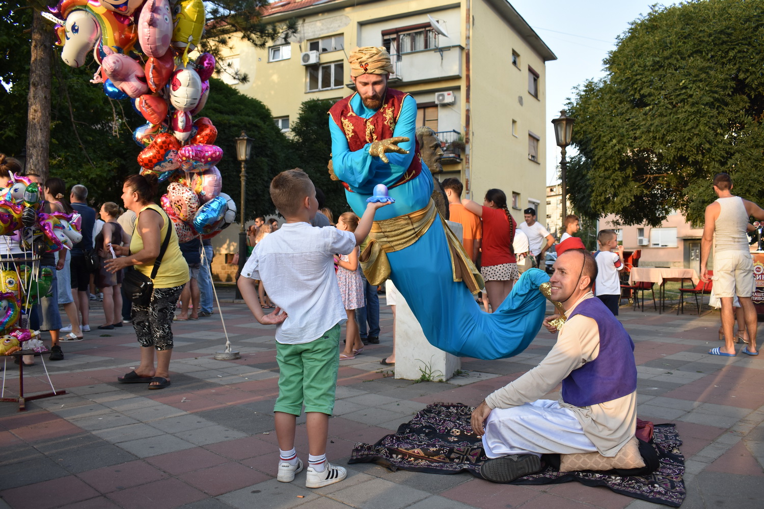 Магији прелепог поподнева допринели су никад интересантнији улични аниматори: Аладин и дух из чаробне лампе, „mirror шетачи“ – Златни господин и Сребрна дама, пајаци на штулама у сјајним костимима и одличном расположењу, кловнови балонџије и кловн са сапуницом, као и две даме које су бројним заинтересованим малишанима сликале прелепе арабеске на кожи. Сви су представљали праву атракцију за лајковачке малишане, чинећи атмосфера на Градском тргу буде весела и раздрагана.