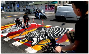 Милоје Митровић, академски сликар из Ваљева и наставник ликовне културе у ОШ „Миле Дубљевић“ у Лајковцу, већ пар деценија је познат по осликавању зебри на пешачким прелазима у многим српским градовима. Последњи такав примењени уметнички подухват Милоје Митровић је извео недавно у Земуну: у Немањиној улици преко пута Основне школе ”Светозар Милетић” и на Кеју ослобођења, код ОШ ”Лазар Саватић”. У питању је пројекат за који је Митровић ангажован од Градске општине Земун, у оквиру којег је одржана ликовна радионица за ученике ове две школе и уметнички перформанс „Упознајмо зебру“, као и предавање о безбедности у саобраћају.