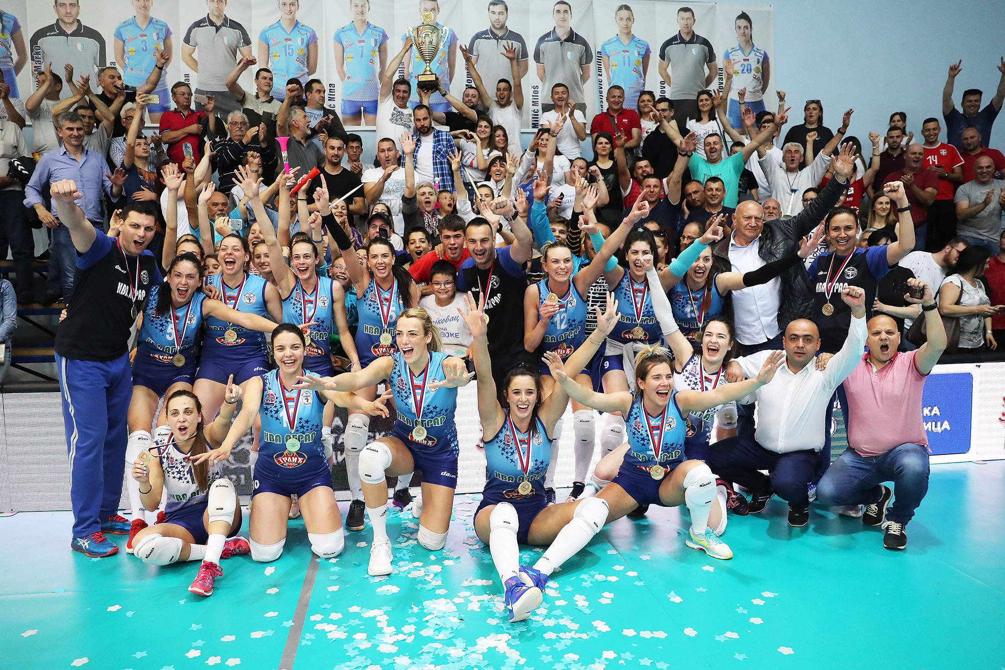 Шампионски пехар капитену Железничара Ивани Лазаревић уручио је председник Одбојкашког савеза Србије Зоран Гајић, док су златне медаље одбојкашицама поделили први потпредседник ОСС Ђула Мештер, наш прослављени репрезентативац, и Зоран Поповић, представник банке Поштанска штедионица. Огромне заслуге за успехе ОК Железничар припадају председнику клуба Живораду Лазаревићу, који је све време веровао у визију великог клуба из малог града. Сјајно је тим последњих месеци водила Мирјана Мусулин, заменивши одличног Драгутина Балтића, који се разболео. Разиграла је још пар одбојкашица и тиме „продужила“ клупу, што се показало врло битним у завршном маратону. И вечерас је у правим тренуцима узимала тајмаут, давала праве савете и правила адекватне замене.